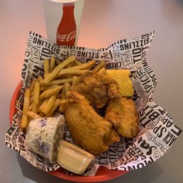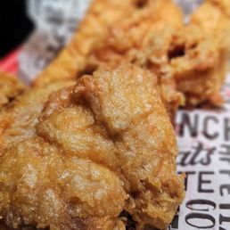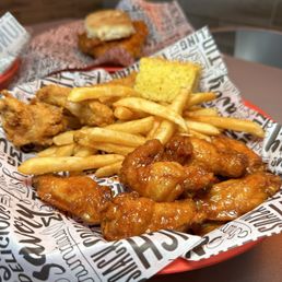 Came back again and just wanted to say it's still really good! I think smth to note was that when looking at other reviews, the owner said the cornbread comes with butter to combat the dryness but we didn't see that until after we finished the bread. I think it might need to be reminded to the workers that the meals with the cornbread should be served with butter. Other than that, my partner shared the 5 piece spicy tenders with me and he thought they weren't as good as the spicy wings. I thought they were still good but they were dryer than last time, feeling a bit rushed (waited a good 15-25 min the first time and they came out in about 10 minutes this time). Personally, I wipe off any crumbs that I leave on the table but the tables were quite crumby when we showed up. Not too much of a problem but just smth I noticed that wasn't a problem last time. Still, I think this is better chicken than Cane's and will be coming back :)